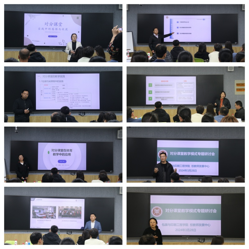 会上,包装与印刷工程学院卢芳芳、李俊锋、宋卫生、位春傲、体育部张仝、物流与电商学院李金峰、食品与生物工程学院陈黄曌、靳晓琳等八位老师依次分享了自己对分课堂教学法实践过程中的体会、收获。有的老师将对分课堂教学法与BOPPPS教学法有机结合,进行了大胆尝试;有的老师不断探索对分课堂对工程认证工作的促进作用;有的老师将对分课堂教学法各环节具体实施的方法进行了分享,有的教师针对开展对分课堂遇到的问题,分享了自己的解决办法。发言教师慷慨激昂,参会人员认真聆听,会场时不时爆发出热烈的掌声。