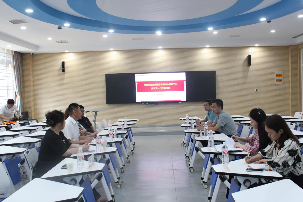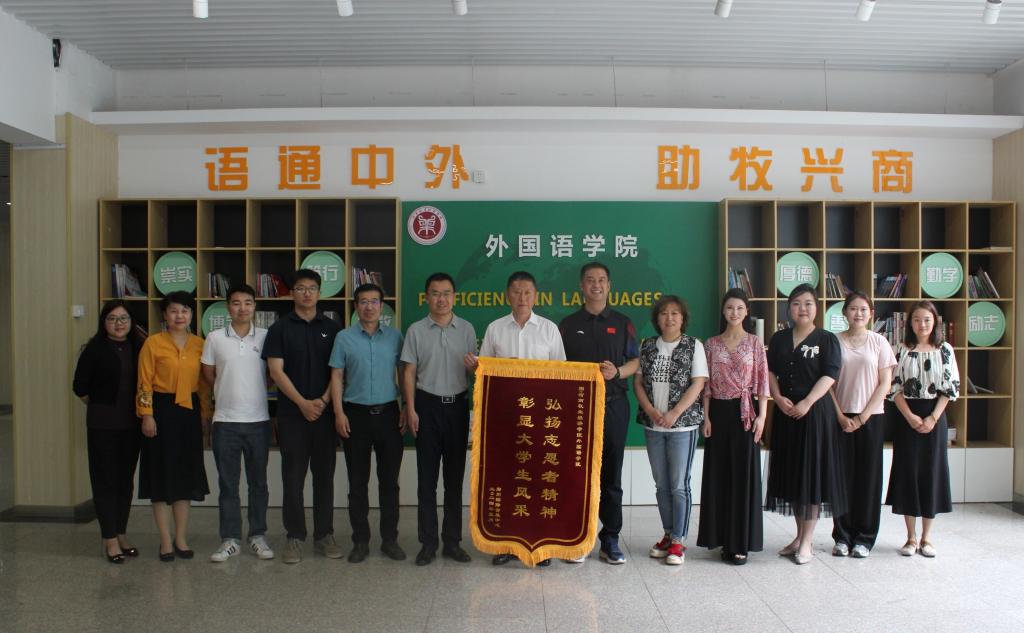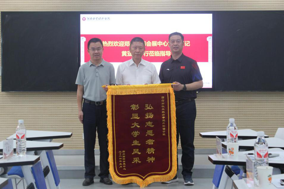 5月20日上午,郑州国际会展中心党委书记、董事长黄亚宾一行四人到外国语学院就校企深度合作事宜进行交流座谈,并为外国语学院赠送锦旗和感谢信。外国语学院领导班子成员及相关师生代表参会,会议由副院长闻华主持。