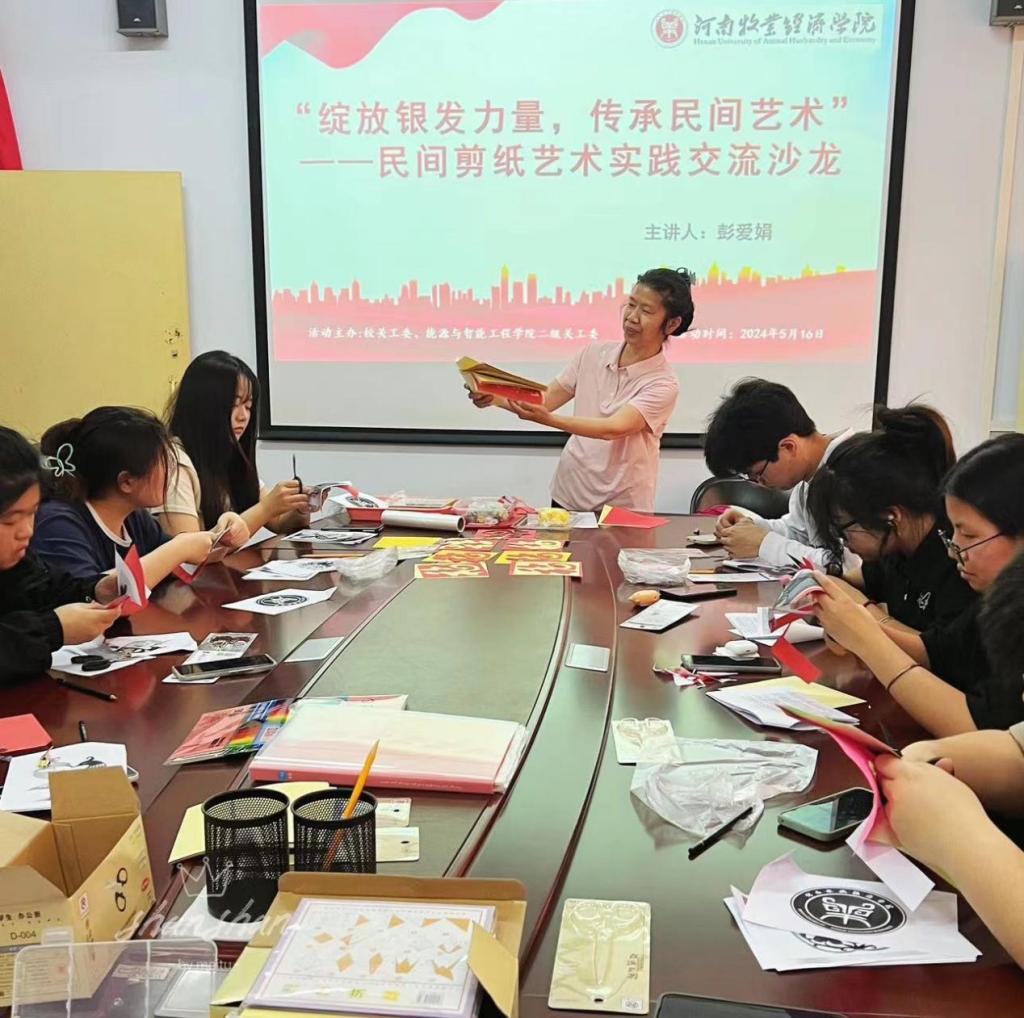 为进一步推动非遗文化走进校园,丰富青年学子的文化底蕴,培养学生的民族自豪感与爱国热情,近日,由校关工委主办,能源与智能工程学院二级关工委承办的“绽放银发力量,传承民间艺术”民间剪纸艺术交流沙龙,在我校北林校区老干部活动室成功举办。离退休职工工作处处长聂莉出席活动,退休教职工彭爱娟老师及20余名青年师生参加活动。
