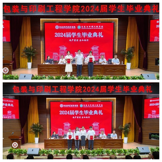 期间,姚毅为省级优秀毕业生颁发证书;张岩为校级优秀毕业生颁发证书;包装与印刷工程学院副院长刘士伟、苗红涛分别宣读了《关于表彰2024届省级优秀毕业生的决定》《关于表彰2024届校级优秀毕业生的决定》。