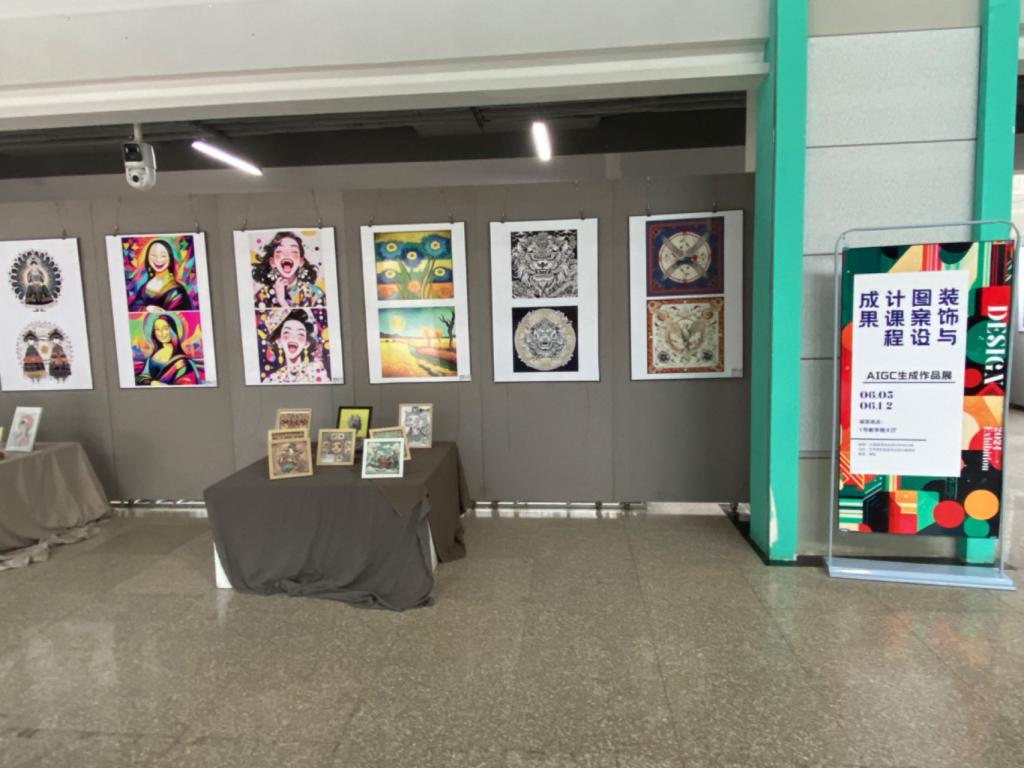 据悉,课程教师团队在这次教学改革中起到了至关重要的作用。教师们不仅传授了装饰与图案设计的基本理论知识,更重要的是,引导学生们如何利用AIGC技术展开创作。此外,这次展览还得到了艺术学院张鹏院长所主持的河南省高等教育教学改革研究与实践项目《人工智能时代艺术设计学科人才培养模式改革研究——以视觉传达设计专业为例》、艺术学院崔栋博士的科研启动资金项目《人机共创:基于AIGC技术的艺术设计教学新范式探究》的科研成果支撑,为实践教学提供了技术支持和资源保障。