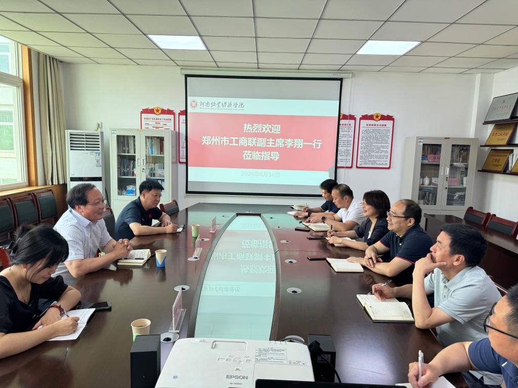 王国辉对李翔一行表示热烈欢迎并感谢郑州市工商联一直以来对学院工作的支持和帮助,而后从历史沿革、师资队伍建设、专业建设和校企合作开展情况等方面介绍了学院的基本概况。何丽娜谈了关于强化应用型科研反哺教学、人才培养质量提升、成果转化及智库建设等方面的合作设想,希望能够通过不同形式的合作促进双方资源共享,实现互利共赢,进一步发挥高校服务地方经济社会发展职能。李翔介绍了郑州市工商联的基本概况,并围绕开展专题调研、智库建设、参政议政和提供决策咨询服务阐述了双方合作的前景,并表示希望在智库建设和服务学校毕业生就业方面提供必要的支持和服务。随后,与会人员结合校政合作、产教融合、平台打造等方面进行了深入讨论。