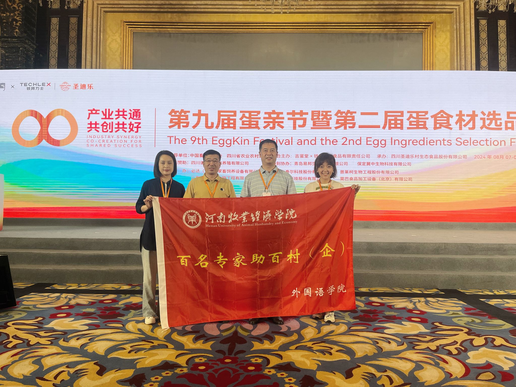 近日,以“蛋通 共好”为主题的第九届蛋亲节暨第二届蛋食材选品节在成都举行。我校外国语学院应校企合作单位邀请,为本次会议提供语言支持和英语直播服务。