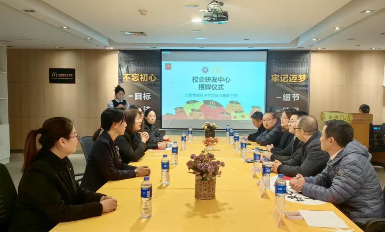 11月26日下午,工商管理学院党委书记王国辉、副院长何丽娜、科学技术处副处长史岳鹏等一行7人前往河南迈乐加餐厅食品有限公司,举行“企业数字化人力资源管理开发与应用校企研发中心”挂牌仪式,并就下一步校企研发工作举行座谈交流。