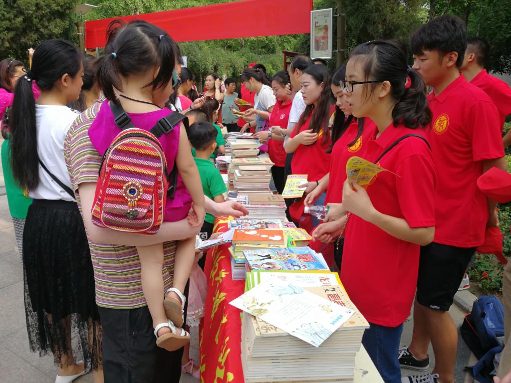 各公益志愿服务团队分工协作,在紫荆山公园内开展“珍爱生命 远离溺水”公益宣传、“爱心书摊”四周年庆活动等活动。软件学院两名党员志愿者与学生志愿者一起组织现场群众阅读爱心书籍,接受借阅捐赠,并收集广大群众对“爱心书摊”活动的意见建议。